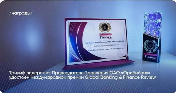 Раиси Раёсати ҶСК «Ориёнбонк» Ҳасан Асадуллозодаро сазовори ҷоизаи бонуфузи байналмилалии Global Banking & Finance Review Awards донистанд.