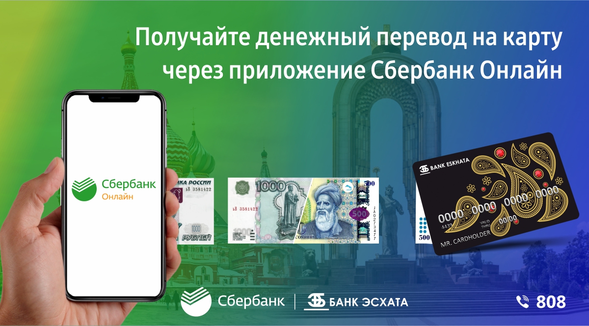 Муштариёни Бонки Эсхата, ки қаблан аз Русия ба Тоҷикистон пул интиқол медоданд, акнун имкон доранд бо усули нав ва осон ин корро анҷом диҳанд: интиқол аз корти «Сбербанк» ба корти «Бонки Эсхата» бо истифодаи барномаи мобилии “Sberbank Online” ба роҳ монда шудааст.