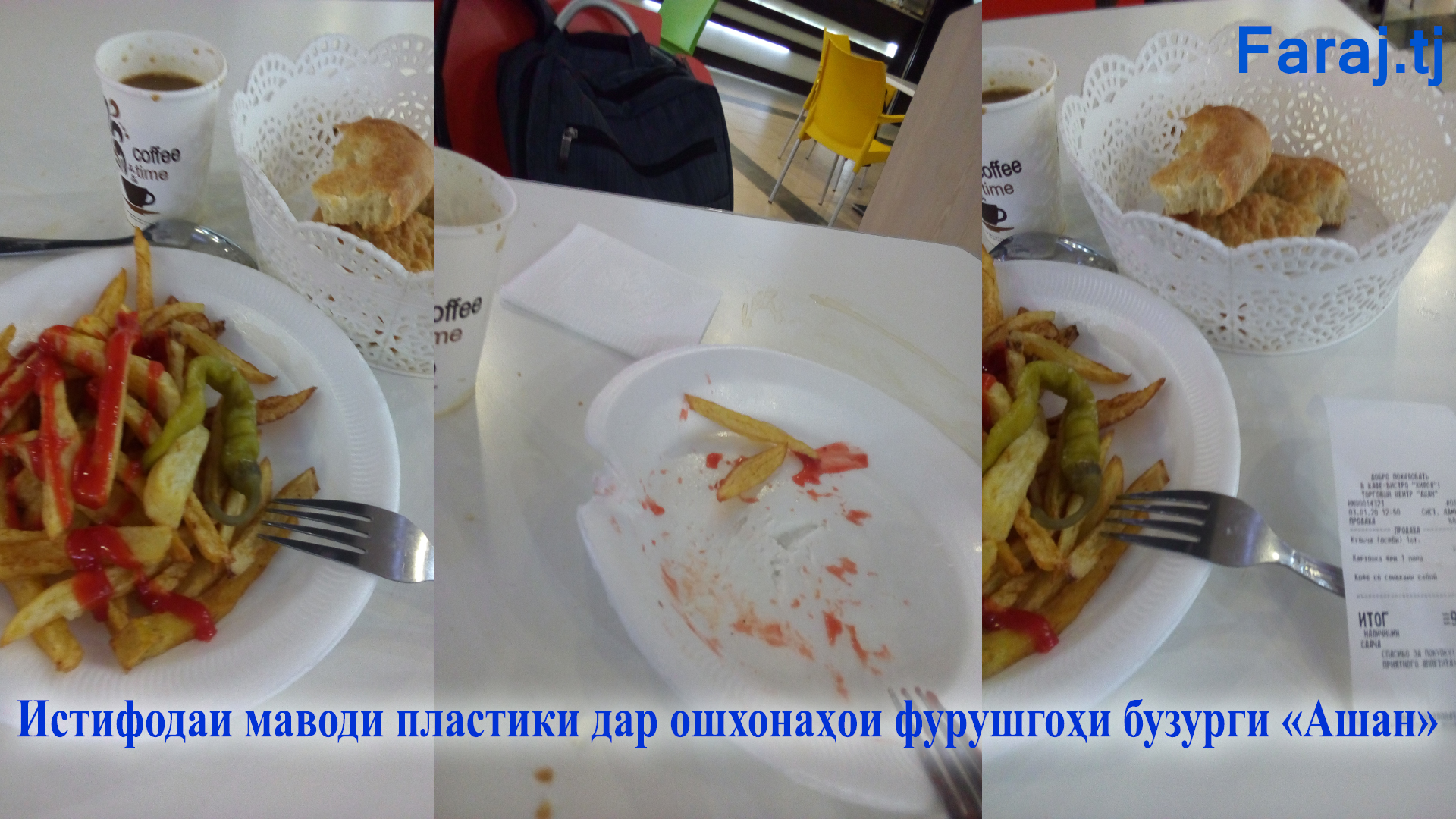 Дар нуқтаҳои истеъмоли хӯрок дар фурӯшгоҳи бузурги “Душанбе мол” – “Ашан” хӯрокҳои гарм ба сокинон дар зарфҳои пластикӣ пешкаш мегардад.