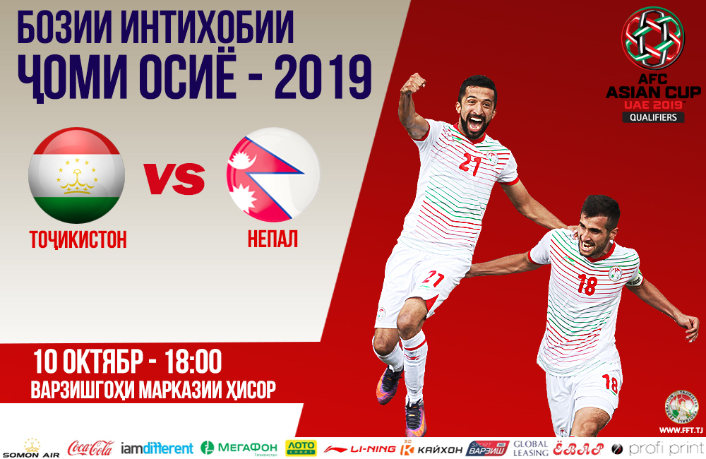 Инчунин дар ин рӯз, 10-уми октябр дар варзишгоҳи марказии шарҳи Ҳисор дар доираи даври интихобии Ҷоми Осиё-2019 дар гурӯҳи “F” дастаҳои мунтахаби Тоҷикистон ва Непал рӯ ба рӯ мешаванд. Ин бозӣ соати 18:00 оғоз мешавад.