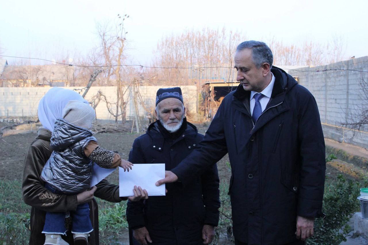 Раиси вилоят нахуст ба волидайн ва ҳамсари шаҳид изҳори ҳамдардиву таслият намуда, таъкид карданд, ки ҷонфидоии фарзандони содиқи Ватан дар саҳифаҳои пурифтихори таърихи давлатдории миллӣ сабт мегардад. Сипас, аз номи Асосгузори сулҳу ваҳдати миллӣ – Пешвои миллат, Президенти Ҷумҳурии Тоҷикистон муҳтарам Эмомалӣ Раҳмон ба ҳамсари шаҳид калиди хонаи дуҳуҷрадор аз маркази шаҳри Бохтар ва аз номи раиси вилоят кумаки молиявӣ тақдим шуд.