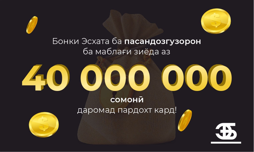 Дар Бонки Эсхата иқдоми нав амал мекунад, ки дар доираи он фоизи пасандозҳо то 16% солона бо сомонӣ ва то 6% солона бо доллари ИМА зиёд карда шуд. Иқдом то санаи 30 июни соли равон эътибор дорад.