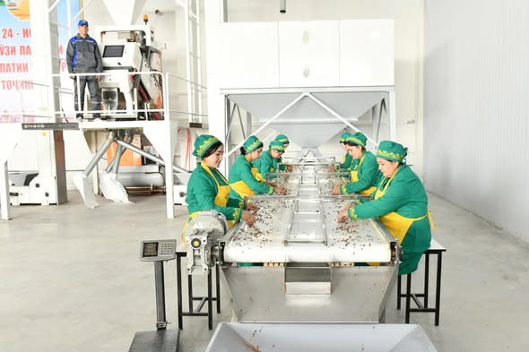 Корхонаи коркард ва бандубасти меваи хушк дар шаҳри Хуҷанд