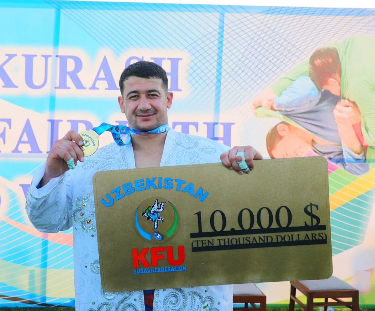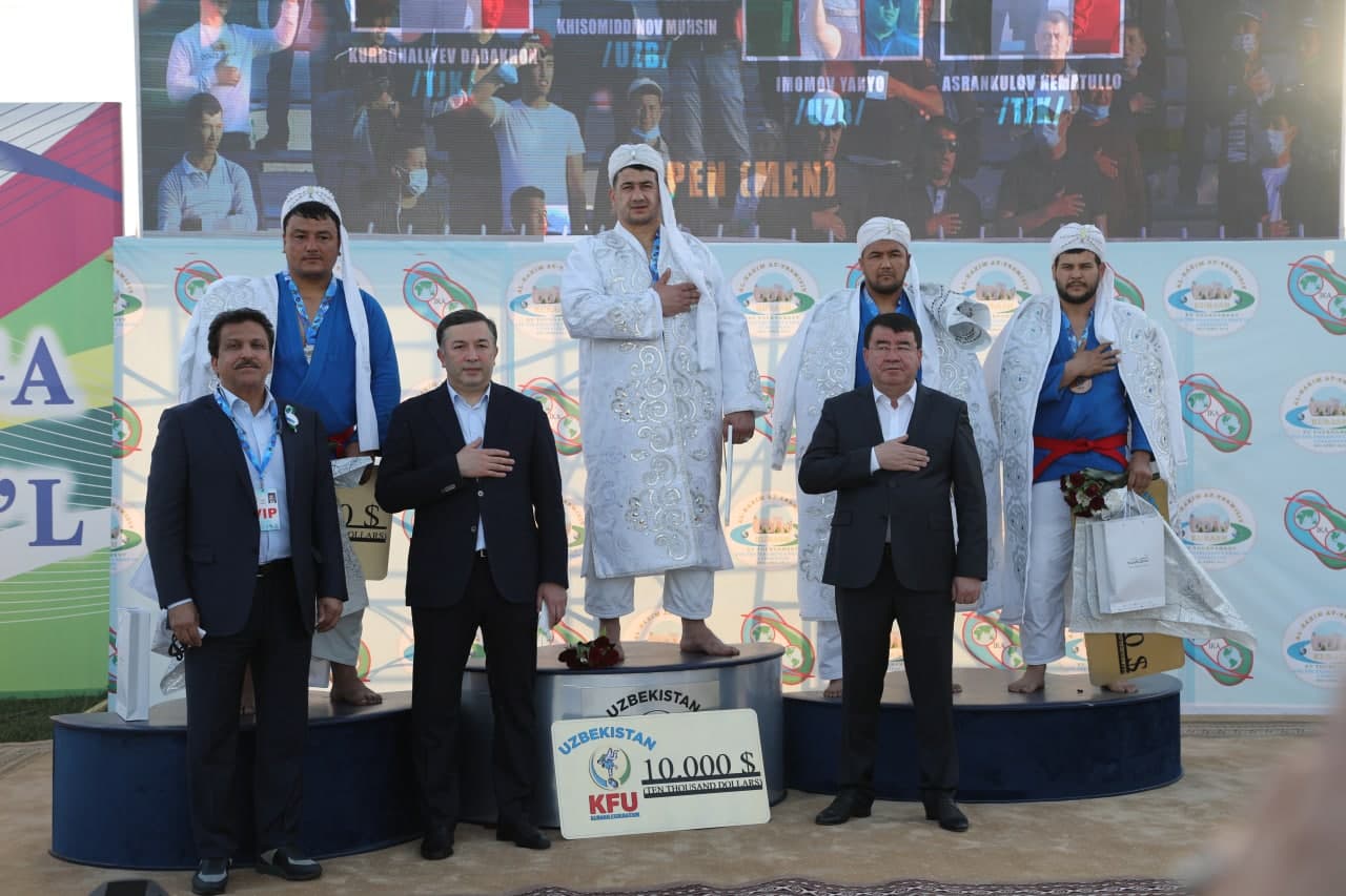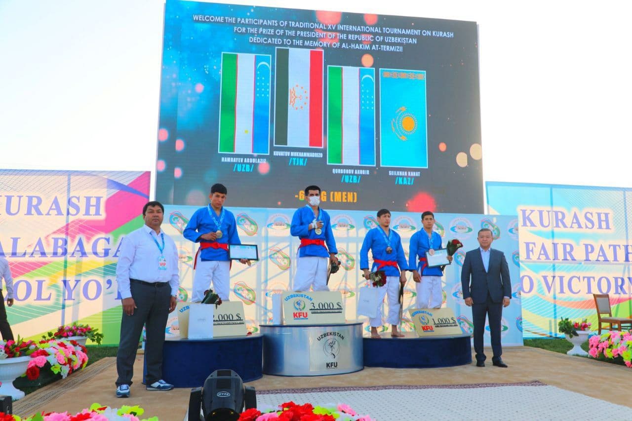 Мукофотҳои ин мусобиқаҳоро ба ғолибон раиси Иттиҳодияи байналмилалии кураш Ҳайдар Фармон, ноибони нахуствазири Ҷумҳурии Ӯзбекистон Беҳзод Мӯсоев, ҳокими вилояти Сурхондарё Тӯра Боболов ва дигар шахсони расмӣ тақдим карданд.