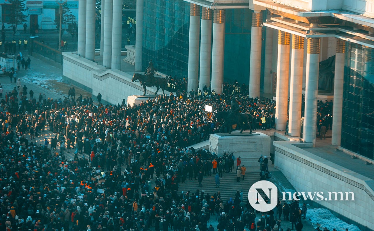Тазоҳуркунандагон талош доранд, ки бинои ҳукуматро забт кунанд. Онҳо арчаи солинавии майдони марказии шаҳрро оташ зананд. Гуфта мешавад, ки парлумони Муғулистон барои эълони вазъи фавқулодда омодагӣ мегирад.
