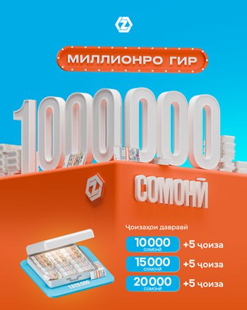 ZET-MOBILE бо хушнудӣ аз идомаи иқдоми бузурги «Миллионро гир» эълон мекунад! Шоҳҷоизаи асосии он маблағест, ки қобилияти тағйир додани ҳаётро дорад — 1 000 000 (як миллион сомонӣ)!