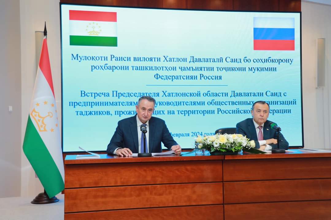 Раиси вилояти Хатлон Давлаталӣ Саид ва сафири Тоҷикистон дар Федератсияи Русия Гулмаҳмадзода Давлатшоҳ Қурбоналӣ дар шаҳри Москва бо соҳибкорону роҳбарони ташкилотҳои ҷамъиятии тоҷикони муқимии Федератсияи Русия мулоқот анҷом дода, ҷиҳати рушди иқтисодиву иҷтимоӣ ва ҷалби сармоя ба иқтисодиёти вилоят муколама карданд.