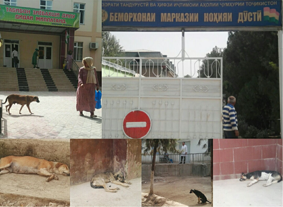 Дар масъалаи зиёд будани сагҳои дайду дар саҳни бинои беморхона хостем бо масъулони беморхона суҳбат кунем, мутаассифона, касеро пайдо накардем.