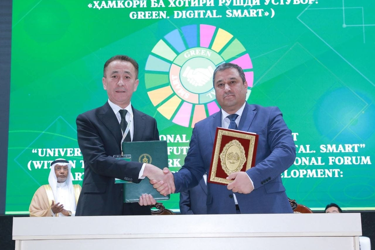 Имрӯз дар доираи ҳамоиши Форуми байналмилалии «Ҳамкорӣ ба хотири рушди устувор: Сабз. Рақамӣ. Ҳушманд» Қурбонзода Маҳмадалӣ Раҳмат, ректори Донишгоҳи давлатии Бохтар ба номи Носири Хусрав ёддошти тафоҳуми ҳамкорӣ байни Донишгоҳи миллии омӯзгории занонаи Қазоқистон ба имзо расонида шуд, ки заминаи мусоидро барои густариши ҳамкориҳои илмӣ ва академӣ фароҳам меорад.