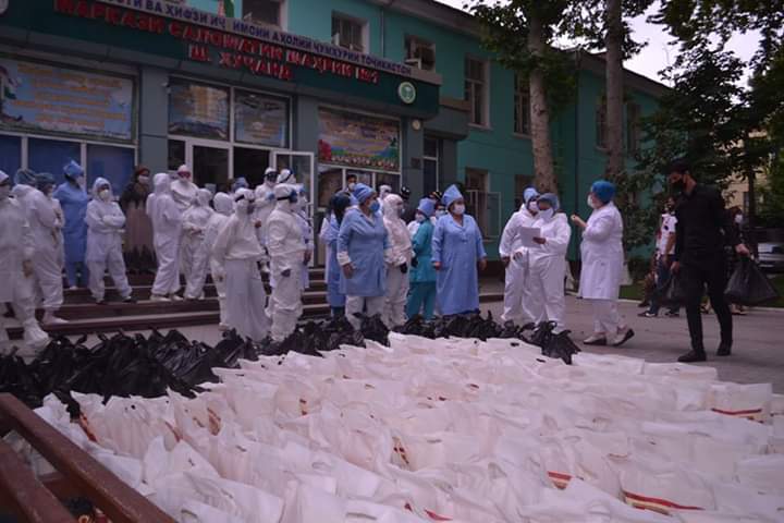 Дастгирии раиси вилояти Суғд, муовини аввали раиси Маҷлиси миллии Маҷлиси Олии Ҷумҳурии Тоҷикистон Раҷаббой Аҳмадзода иборат аз маводи ғизоӣ, аз ҷумла, орд, равған, биринҷ, шакар, макарон ва ғайра ба 800 нафар корманди марказҳои саломатӣ, «Ёрии таъҷилӣ», маркази назорати давлатии санитарию эпидемологӣ ва шуъбаи Раёсати кумитаи ҳолатҳои фавқулода ва мудофиаи граждании шаҳри Хуҷанд расонида шуд.