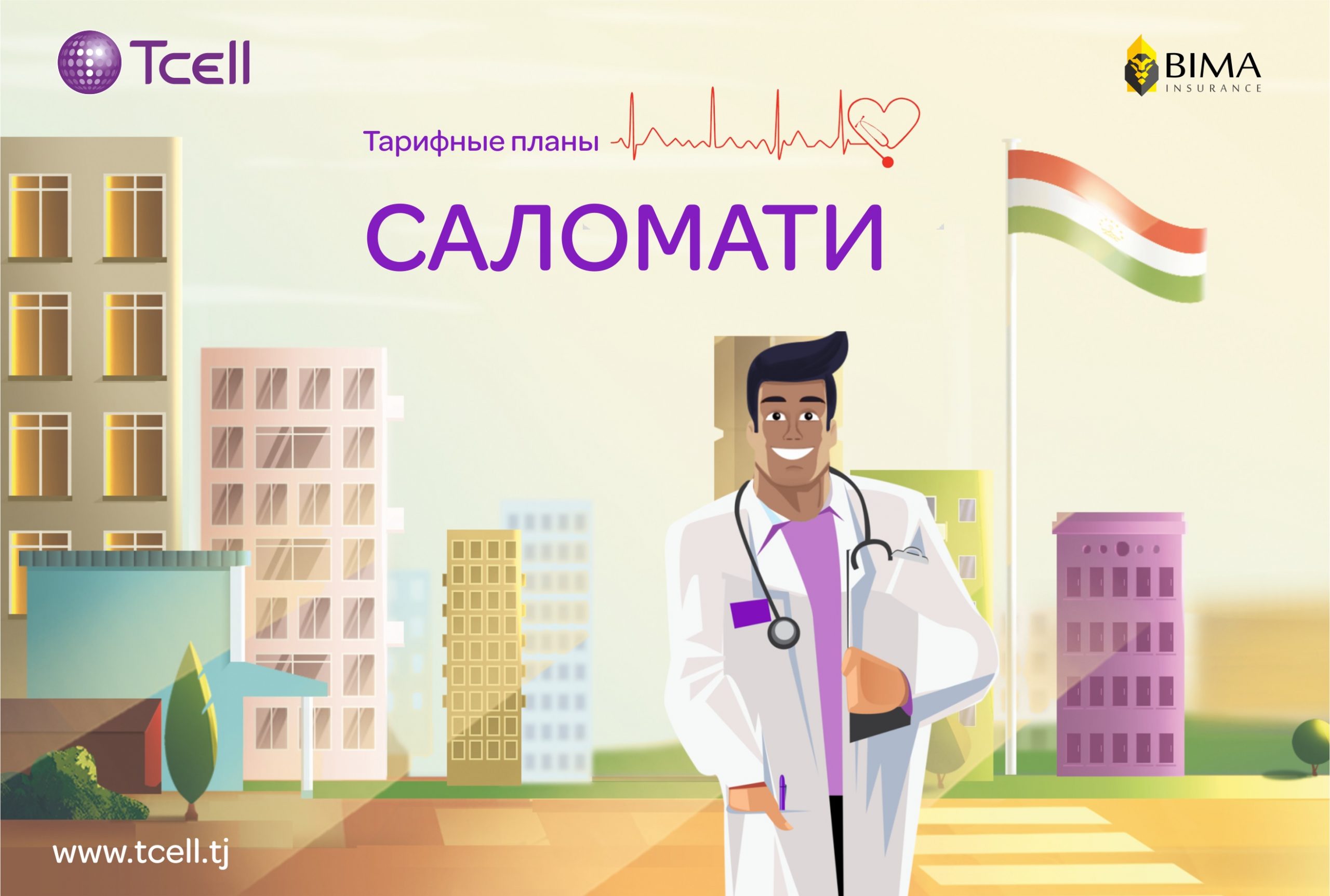 Ширкати мухобиротии Tcell и ширкати бима (суғурта)-и BIMA Insurance қарордоди муштараки ҳамкориро ба имзо расониданд, ки натиҷаи он тарофаҳои нақшавии “Саломатӣ” аст. Муштариёне, ки ба ин тарофаҳо пайваст мешаванд, пас аз пардохти муштарипулӣ ба таври худкор (автоматӣ) соҳиби полиси бима аз ҳодисаҳои нохуш мегарданд.