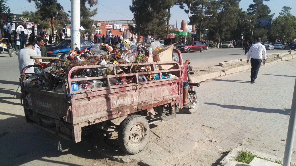 Корхонаи давлатии фаръии «Хоҷагию манзилию коммуналӣ»-и ноҳияи Қубодиён партовҳои маркази ноҳияро бо як аробаи худкори чинӣ мекашонад, ки он низ тариқи шартнома киро шудааст.
