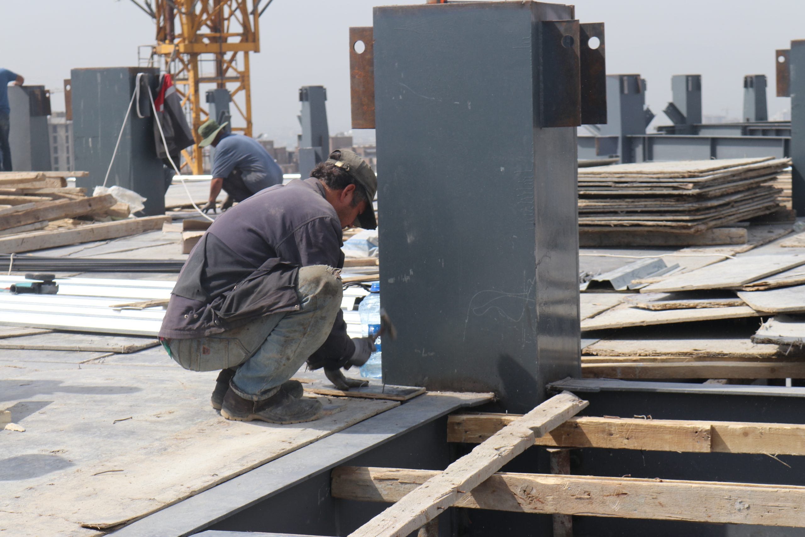 Мо рӯзноманигорон низ ба ошёнаи 22-юми нотамом баромадем ва албатта тарс моро фаро гирифт, вале мехостем ҷараёни корро бо чашми худ бубинем.