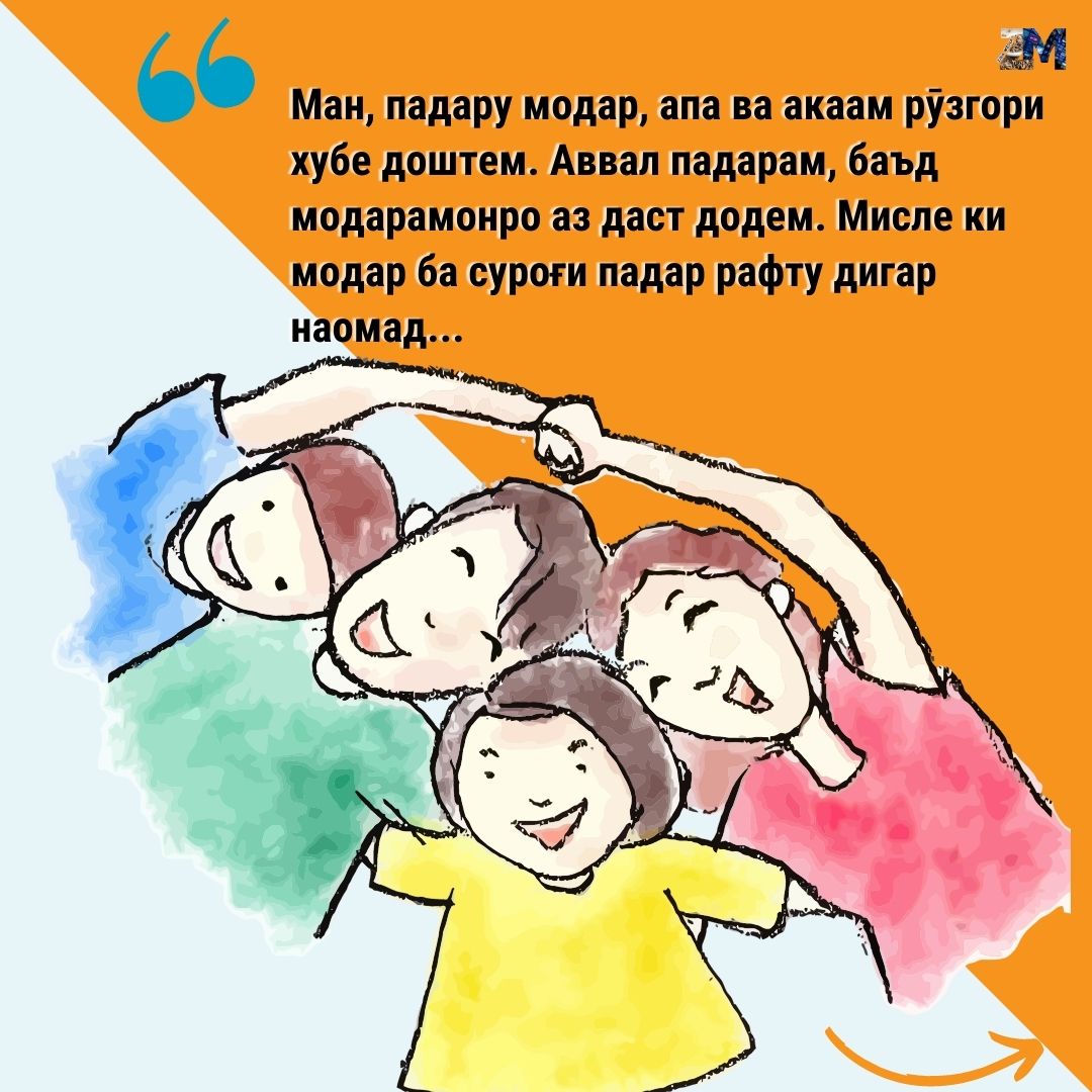 “Ман, падару модар, апа ва акаам рӯзгори хубе доштем. Аввал падарам, баъд модарамонро аз даст додем. Мисле ки модар ба суроғи падар рафту дигар наомад…”, – қисса мекунад ӯ.