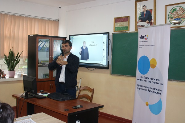 Бо кӯмаки DVV International дар Тоҷикистон соли ҷорӣ барномаи таълимӣ ва дастурамалҳои омӯзиши асосҳои забони ишораи тоҷикӣ таҳия шудааст. Барномаи мазкур аз 1950 ишора иборат буд, мавзуҳое аз қабили алифбои дастии забони тоҷикӣ, феъл, оила, мамлакат ва шаҳро, табобат, касбу ҳунар ва ишораҳои умумиро фаро мегирад. Барномаи мазкур аз ҷониби Вазорати маориф ва илми Тоҷикистон ва ҳамчунин аз ҷониби Вазорати меҳнат, муҳоҷират ва шуғли аҳолии Тоҷикистон тасдиқ ва барои амалисозӣ тавсия шудааст.
