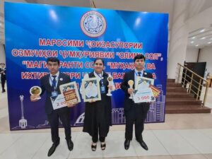 табобатӣ», дар номинатсияи «Биология» мақоми дуюмро ба даст оварда, маҳорати баланди хешро исбот намуд. Инчунин, Хайруллозода Меҳроб ва Умарова Саида – ҳарду донишҷӯёни бахши якуми ихтисоси «кори табобатӣ» дар ҳамин номинатсия сазовори ҷойҳои сеюм гардиданд.