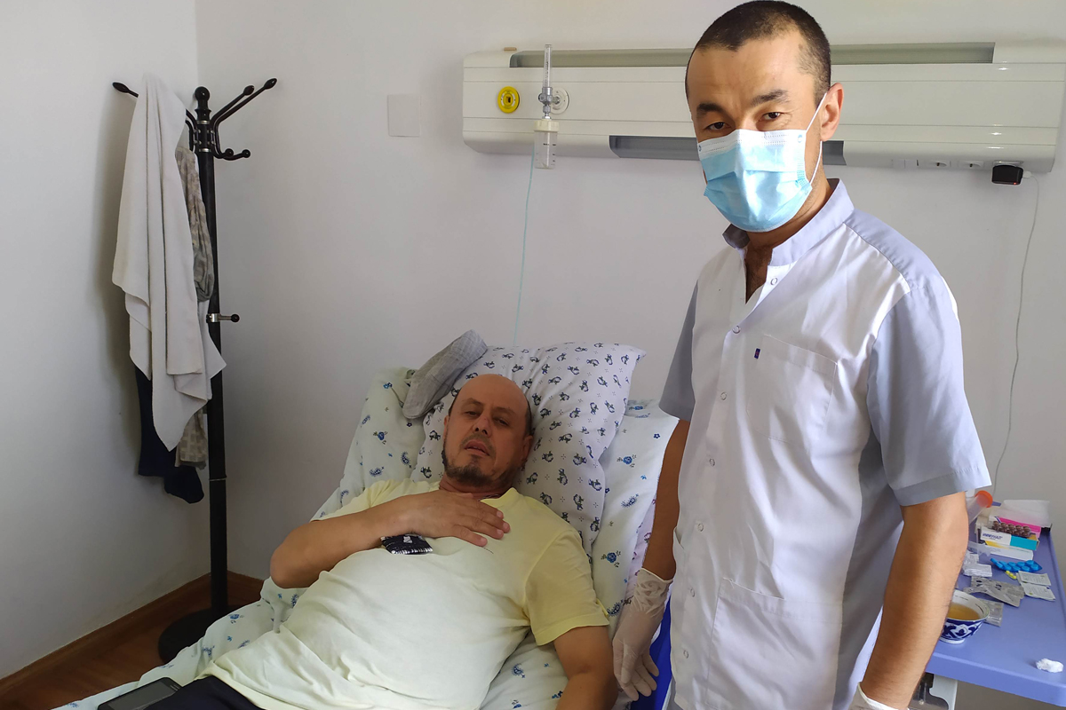 Ҳамин тавр, 14 рӯзи карантинро пушти сар кардам ва ба назди зану фарзандонам баргаштам. Пас аз чанд рӯзи истироҳат дар хона, мувофиқи нақша, рӯзи 8-уми май боз ба кор сар кардам. Пас аз 4 шабонарӯзи корӣ бо вазъи бади саломатӣ бемори солмандеро оварданд ва ману як ҳамкасбам дар қабулгоҳ ӯро муоина кардем. Дар ӯ нишонаҳои коронавирус мушоҳида гардид ва пас аз ташхис ӯ бистарӣ карда шуд. Фикр мекунам, ҳарчанд ҳамаи қоидаву меъёрҳои санитариро, ҳангоми муоинаи бемор, риоя карда будем, вале ду-се рӯз баъд худамро бад ҳис кардам. Ҳароратам каме баланд шуд, вуҷудамро беҳолию хастагӣ фаро гирифт ва сулфазанӣ пайдо шуд. Ман дар шуъбаи пулманологӣ, ки махсус аз ҷониби роҳбарияти Маҷмааи тандурустии «Истиқлол» барои қабул ва табобати табибон ва мутахассисони ҳамаи муассисаҳои табобатии кишвар омода гардида буд, бистарӣ шудам. Санаи 14-уми май шуш ва роҳҳои нафасамро ташхиси рентгенӣ кардам ва муоина дар баданам нишонаҳои “бронхити музмин”-ро муайян кард. Илова бар ин, фишорам ҳам баъзан баланд мешуд. Бо кӯмаки ҳамкасбон ба табобат пардохтам. Муддати 14 рӯз ман дар шуъбаи мазкур зери назорат ва табобати табибони воқеан мушфиқ Акбарзода Саидаъзам, Зуҳуров Ҳасан Довудович, Алфия Қулмамадова, Аҳмадов Сулаймон ва ҳамшираи шафқат Зулхумор Гадоева қарор доштам. Дар ин муддат ғамхории самимии ҳамкасбонро нисбат ба худам эҳсос кардам. Доруву дармон аксаран аз ҷониби беморхона таъмин мешуд, аммо дӯстону рафиқон барои дарёфти баъзан доруҳои зарурӣ кумакам карданд.